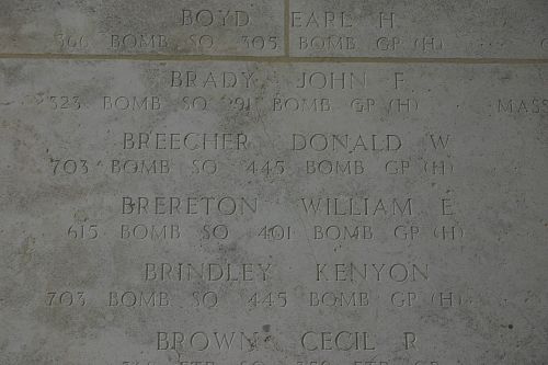 T/Sgt William E. Brereton joined the U.S. Army Reserve in Detroit, Michigan on 29 August 1942.The airplane was hit by flak near the No. 3 engine. Ten seconds later the aircraft went into a spin and dived out of control. Three parachutes were seen to come out of the aircraft. From the crew of nine, only the pilot 1st Lt Herbert L. Oas survived and was taken prisoner.