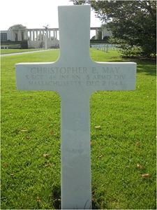 S/Sgt Christopher E. May attended high school for four years before he enlisted in Springfield, Massachusetts on 27 February 1941.The 46th had been attacked during the day by the 1st Battalion of the German 943 Regiment (353rd Infantry Division). Three companies of this enemy battalion participated in a general attack on the 4th Infantry Division position. The 46th Armored Infantry Battalion killed 75 enemy personnel before it was forced to withdraw at 1500. However, no ground was lost as elements of the 4th Division took over.