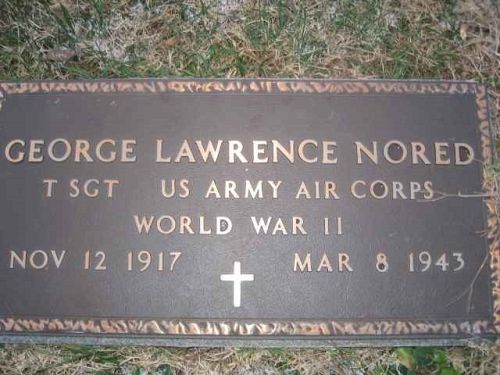 British records showed that T/Sgt Nored was buried in a common grave, together with a S/Sgt Byrne, but the original cemetery records that could prove this were destroyed. A body under the designated cross presumed to be Byrne was disinterred. No other remains were present.