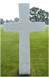 Pvt Herbert W. Smith was employed by the Phillips and Buttorff Manufacturing Company before he enlisted in Nashville, Tennessee on 24 February 1941.He was a veteran of the Tunisian, Sicilian and Italian campaign and was stationed in England prior to the invasion of Normandy.