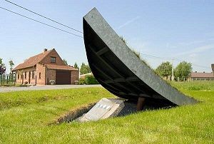 At the place of the crash in the Clamarastraat in Pollinkhove, a statue remembers those fallen airmen.