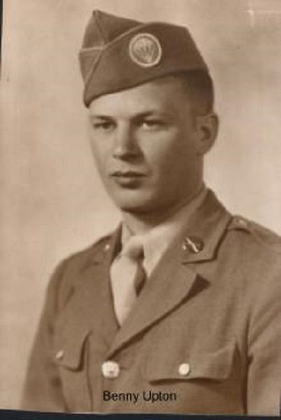 Pvt Benjamin S. Upton enlisted in Sacramento, California on 12 October 1943.It was while the plantoon was dug-in on the Wylerbaan, which is a small road (mostly behind hedges that were plant along the side of the road) that Pvt Upton was killed with his buddy Tuttle. There was a farm site in front of their position (which was nothing more than a fox hole behind the hedges). It wasn't certain what their target was (probably some enemy movement at the farm site), but they fired a couple of rounds from the Bazooka. A little more than a half a mile to the front was the German Reichwald Forest, which was crawling with German soldiers, tanks and field guns. Apparently a German tank or field gun observed the flash from the bazooka. An 88 mm zeroed in on their position, which received a direct hit setting off the bazooka ammunition that was stored near or in the hole. Needless to say, neither of those two men suffered.