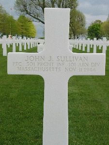 Pfc John J. Sullivan enlisted at Fort Devens, Massachusetts on 2 February 1942.He was first buried at the Temporary American Military Cemetery of Molenhoek, The Netherlands.