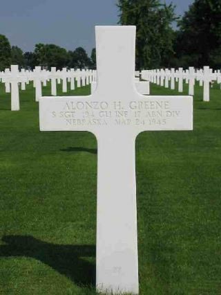 Alonzo Greene was an automobile serviceman when he enlisted in Denver, Colorado on 5 April 1943. He met Ida Mae McCoy during his training in Georgia and married her on 7 February 1944, when he was 19. Ida was 18.On 24 March 1945 he was a passenger in glider # 43-41175. When it reached the drop zone, they encountered smoke and could hardly see the ground. After releasing from the tow plane, it made a 90 degree turn to the left. Theyencountered flak and small arms fire at 200 to 300 feet. After another left turn,it was the last time that anyone saw the glider.