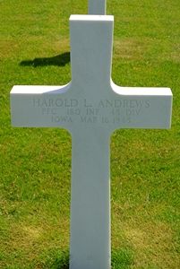 Pvt Harold Andrews graduated from Gruver High School in June 1944 and enlisted on 15 August 1944. He was sent overseas in January 1945.His brother, Richard C. Andrews, is buried next to him.