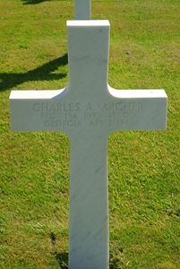 Pfc Charles A. Archer worked on a farm before he enlisted at Fort Mc Pherson, Atlanta, Georgia on 1 December 1943.He joined his unit from the 38th Replacement Battalion on 21 September 1944 as a private. He was promoted to Pfc on 1 December 1944.