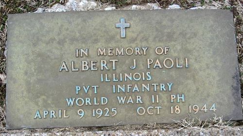 Pvt Paoli enlisted on 7 July 1943 and rwas sent overseas in September 1944.According to official war correspondence by the War Department with Albert’s mother, he took part of an attack to hold the high ground covering an important road in the vicinity of Germeter. The attack was made under stiff enemy resistance and there were a great number of casualties. Although the high ground was taken and held throughout the night, strong enemy attacks forced Pvt Paoli's unit to withdraw the next morning. Heavy enemy action made evacuation of the casualties impossible. During roll call later that day on 18 October 1944, he was not present, and a search in the area did not result in finding him.