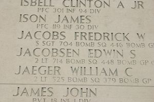 Lt Jacobsen is remembered at Memory Gardens Cemetery and Memorial Park in Colonie, Albany County, New York.