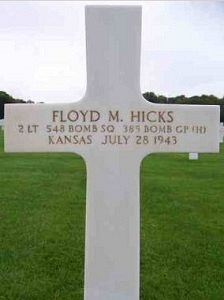 Floyd Hicks was a retail manager.He volunteered for the Air Corps of the Army of the United States at Fort Riley, Kansas, on 24 March 1942 and received his wings in La Junta, Colorado, on 4 January 1943.