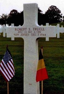 Pfc Robert S. Truell first buried at Temporary American Military Cemetery Henri-Chapelle, Belgium Block DD, Row 6, Grave 110.