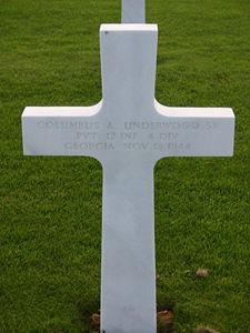 Columbus Underwood enlisted in Georgia on 20 March 1944 and was overseas for eight months when he was killed.Source of information: FOHF, Carla Mans, www.wwiimemorial.com, www.archives.gov, www.ancestry.com - U.S. WWII Draft Cards Young Men, The Dothan Eagle Newspaper 21 February 1945