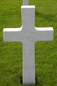 1st Lt Schmidt graduated from DeVilbiss High School, where he was president of the Student Council. He entered Heidelberg College for one term, then worked for the Ford Motor Co., Dearborn, Michigan, as a chemist in the research department before enlisting. He joined the Air Corps of the U.S. Army Reserve in Chicago, Illinois, on 27 November 1943 and was commissioned on 14 April 1944 at Freeman Field, Indiana and went overseas in November.The mission of the day was to bomb the oil refinery of Ruhland with 222 bombers. Only 24 of them attacked this primary target. 166, including #44-6584, bombed the secondary target, the marshalling yard at Chemnitz.
