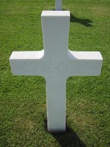 Alfred A Johnson attended high school for 2 years and was a locomotive fireman. He volunteered for the Air Corps of the Army of the United States in New York City, New York on 21 August 1942.The airplane was shot down by enemy fighters. According to the statement of a surviving crew member, he helped S/Sgt Johnson putting on his parachute and he tried to make him bail out bur he refused.
