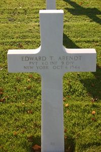 Pvt Edward T. Arendt attended Wake Forest College.He enlisted in Romulus, New York on 18 March 1944.
