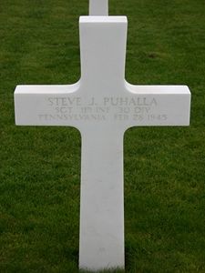 Sgt Steve J. Puhalla enlisted in January 1943 and was sent overseas in May 1944He was reported wounded in action on 21 December 1944. After recovering, he rejoined his unit in January 1945.