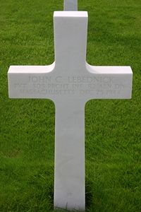 Pvt John C. Lebednick graduated from Moody Junior High School and Lowell Trade School and was employed at the Megowen Educator Company.He enlisted at Fort Devens, Massachusetts on 27 May 1943 and was sent overseas in December 1943.