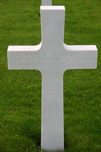 Pfc Karl F. Schmidt enlisted in Philadelphia, Pennsylvania on 14 December 1942.