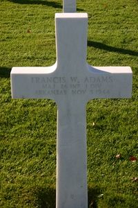 The citiation for his Silver Star stated: "Captain (Infantry) Francis W. Adams (ASN: 0-23451), United States Army, was awarded the Silver Star for gallantry in action in connection with combat operations against the enemy while serving with the 26th Infantry Regiment, 1st Infantry Division in the Mediterranean Theater of Operations during World War II."