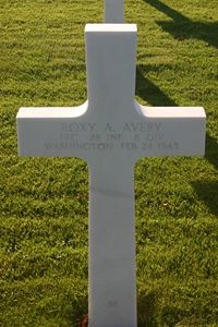 Pfc Roxy A. Avery enlisted in Seattle, Washington on 15 November 1943. Het attend high school for 4 years and was a pattern and model maker before he enlisted.He was killed by shrapnel in both legs. He was first buried at block VVV, row 2, grave 33 on 1 March 1945. He was disinterred on 17 November 1947 and his remains were prepared and placed in a casket the same day. He was given his finale resting place on 11 August 1948.