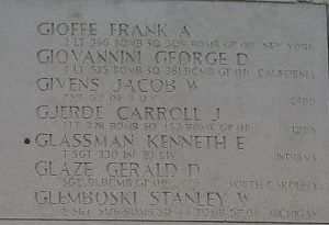 George Giovannini graduated from Santa Rosa High School and was a Santo Rosa Junior College student and truck driver.Crew members of other airplanes in the same group stated that they saw a burst of flak very close to the #3 engine at about two minutes before the I.P. The airplane continued its way, seemingly undisturbed by it. After bombs away, the bomb bay doors remained open and after about 30 seconds it slightly turn away form the formation.