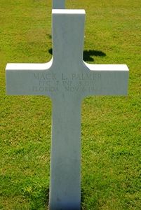 Pfc Mack L. Palmer enlisted in Camp Blanding, Florida on 13 November 1942.First buried at Block W, Row 5, Grave 104.