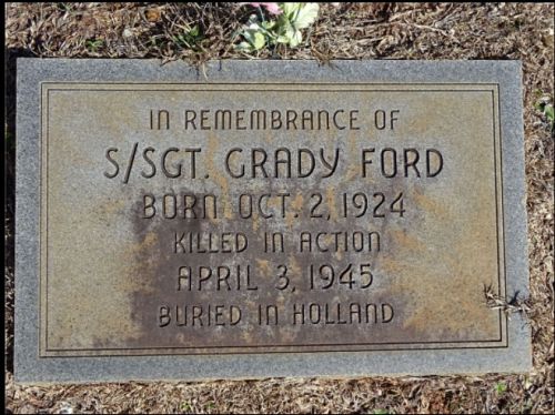 S/Sgt Grady Ford joined the Regular Army at Fort McPherson, Atlanta, Georgia on 18 September 1940. He worked on a farm before he enlisted.S/Sgt Grady Ford is remembered at the Bremen City Cemetery in Bremen, Haralson County, Georgia.