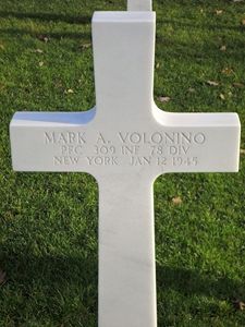 Pfc Mark A. Volonino attended Jefferson High School in Rochester where he was concert master of the Jefferson High Orchestra. He was employed by J. Cunningham & Son Company.He enlisted at Fort Dix, New Jersey on 10 February 1944 and was sent overseas in November 1944.