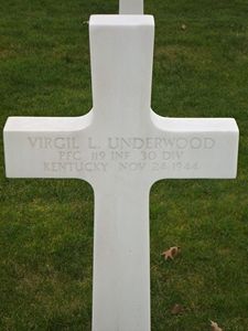 Virgil L. Underwood enlisted on 14 December 1943 in Louiseville,Kentucky.Source of information: Astrid van Erp, Peter Schouteten, John T. Gerlosky, www.wwiimemorial.com, www.findagrave.com, www.ancestry.com 1920 Census / Army Enlistment Records, Family Trees / Headstone and Interment Record / Kentucky Birth Index, www.newspapers.com - The Courier-Journal