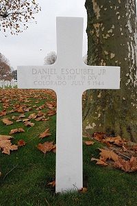 Pvt Daniel Esquibel Jr. attended 2 years of high school. He was a farmer and student. He enlisted at Fort Bliss, Texas on 9 August 1943.He saw action in North-Africa and Italy were he was killed in action.
