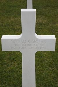 William Moran enlisted on 9 December 1943 in Rochester, New York.His brother, Pvt Eugene M. Moran, is buried at Ardennes Cemetery.