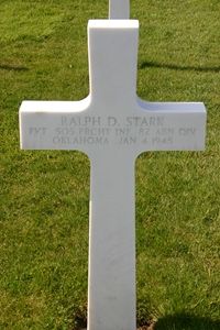 Pvt Ralph D. Stark enlisted in Oklahoma City, Oklahoma on 11 February 1943.He had been hospitalized three times; in July 1944 due to grenade fragments in the thoraxwall and in November 1944 due to nasopharyngitis.