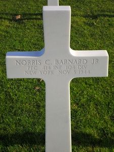 Pfc Norris C. Barnard Jr. attended Swarthmore College before he joined the US Army Reserve on 14 December 1942 in Philadelphia, Pennsylvania.Pfc Norris C. Barnard was killed instantly while administering aid to a wounded comrade.