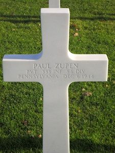Pvt Paul Zupen enlisted on 19 April 1944 at New Cumberland, Pennsylvania.Source of information: Astrid van Erp, Peter Schouteten, Terry Hirsch, www.wwiimemorial.com, www.archives.gov www.ancestry.com - Veteran Compensation Application Files / Family Trees