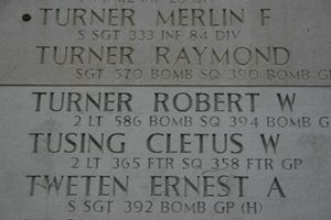 We were in position number 5. I saw a ship coming back from the front of our flight, apparently #2 ship. It was to the left of our ship. When it was at about 7 O'clock to our tail, I saw a chute open. The ship seemed to be under control. It slid under us losing altitude, and when it was at 5 O'clock, I saw a second chute open and very shortly after, I saw the plane explode and burn.Source of information: Gert & Marjan, www.fold3.com, www.memorial.com
