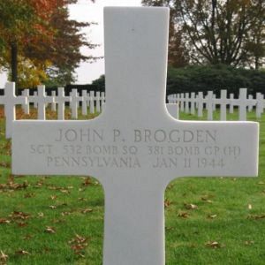 Sgt John P. Brogden attended Durham High School (North Carolina) and was employed as a surveyor for the Pennsylvania Turnpike commission.He volunteered for the Army of the United States in San Francisco, California on 20 April 1942.