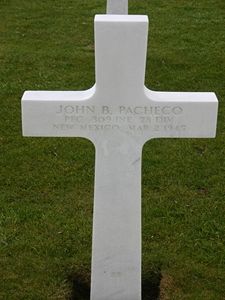 Pfc John B. Pacheco was a baker before he enlisted in Santa Fe, New Mexico on 29 September 1942.Source of information: Astrid van Erp, Peter Schouteten, www.wwiimemorial.com, www.fold3.com, www.archives.gov - WWII Enlistment Record, www.ancestry.com - New Mexico WWII Record / 1940 Census