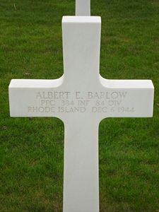 Pfc Albert E. Barlow worked for the Monowatt Electric Company.He enlisted on 28 July 1943 in Providence, Rhode Island.