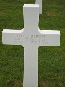 Pvt Leo F. Barnes enlisted in Fort Leavenworth, Kansas on 29 March 1944.Source of information: Peter Schouteten, Terry Hirsch, www.wwiimemorial.com, www.archives.gov - WWII Enlistment Record, www.ancestry.com - U.S. WWII Draft Cards Young Men 1940-1947