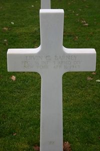 Pfc Ervin C. Barney worked on a farm.He enlisted in Syracuse, New York on 4 November 1943. He was sent overseas in April 1944. He was wounded in action on 17 August 1944 in Belgium.
