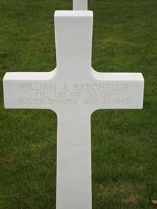Pfc William J. Batchelor enlisted on 22 January 1943.He had just returned from a mine laying expedition and was sitting on the fender of a truck, cleaning his pistol. He was mortally wounded by shrapnel from enemy artillery.