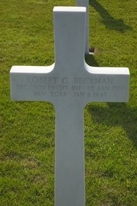 Robert was injured on 4 January 1945 at Arbrefontaine and died of wounds four days later on 8 January 1945. When his father was asked if he wanted Robert's body disinterred and returned to New York for burial, Sam Beckman felt his son was already at rest and gave permission to have Robert permanently interred at Henri-Chappell Cemetery in Belgium. Sam Beckman had lost his son in January of 1945. His mother (Robert's grandmother) died in April. And Margaret Rose Beckman followed her son Robert in death, by August of that same year, dying young of breast cancer.