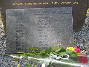 At the place where the battle for Arbrefontaine was fought, there is a statue to honor the fallen of F Company.