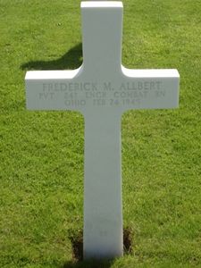 Pvt Allbert is remembered on a memorial stone at East Trumbull Cemetery in East Trumbull, Ashtabula County, Ohio.Source of information: Peter Schouteten, www.ancestry.com - World War II Draft Cards Young Men, 1940-1947, WWIIMemorial.com, www.archives.gov, Richard Bell (second cousin)