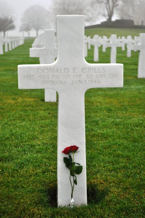 He was the only son of Mr. and Mrs. Hiley Grill. His mother had died on 31 May 1923, shortly after he was born. His parents received his death message from the war department. They just couldn't believe it. They said little to anybody. The family wrote to Lt John Otto of Donald's regiment in France. They didn't know Otto. It was just a name that had appeared on Don's censored letters from overseas. A letter came back from Otto and explained exactly how Donald came to his death in France. It happened Dec. 31, Donald and six others, including Lt Otto were out on combat patrol. The Germans spotted them, then fire guns sputtered. Otto returned to the American lines, dragging the dead body of Donald. A bullet had pierced his skull.