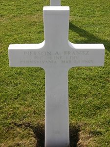 Pfc Pierson A. Frantz was an upholstere before he enlisted in Harrisburg, Pennsylvania on 28 August 1944.Source of information: Raf Dyckmans, Carla Mans, www.wwiimemorial.com, www.fold3.com, www.archives.gov, www.ancestry.com - Pennsylvania Veteran Compensation Application Files, www.history.army.mil/html/bookshelves/resmat/ww2list.html