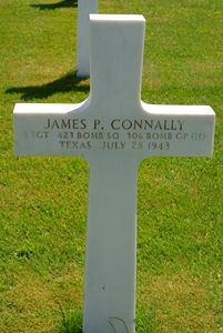 James Connally attended Ratcliff High Schooll and volunteered for the Air Corps of the Army of the United States in Houston, Texas on 28 May 1942. Most likely he lied about his age since he was only 16 at the time.Before the group left the target, they were attacked by German fighter aircraft over Oldenburg, Germany. During the attack, two engines of this aircraft were shot out, one catching on fire. The tail section was shot up badly and the controls were shot out. Already during the attack, the pilot gave the order to bail out. Immediately the airplane went into a flat spin.