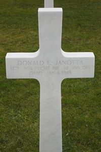 Donald E. Janotta attended Norwalk High School and Assumption College and was employed by Woolworth's Inc. in Cincinnati.He enlisted at Camp Wheeler, Georgia on 5 December 1941 and was sent overseas in March 1943.