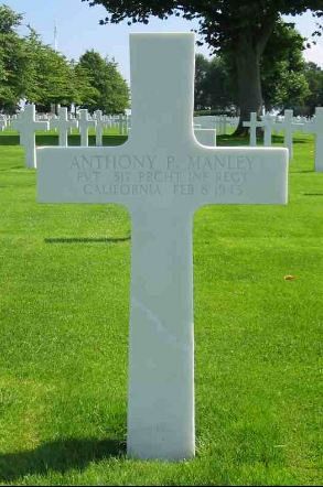 Pvt Manley's foster brother, Cpl Arthur Brestamante, was killed in the same battle.Source of information: Terry Hirsch, Kathy McDermott, www.wwiimemorial.com, www.fold3.com, www.basher82.nl, www.ancestry.com - 1940 Census, WWII Draft Cards