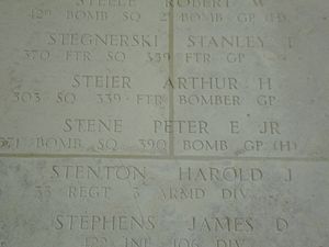 Capt Peter E. Stene, Jr. attended college and was a teacher before he joined the Air Corps of the Regular Army in Wausau, Wisconsin on 6 June 1941.Statement from 2nd Lt James E. Keelan (mickey operator) and only survivor (out of nine crew members):