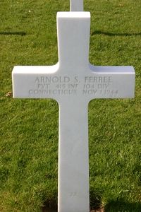 Pvt Arnold S. Ferree joined the US Army Reserve in Hartford, Connecticut on 1 July 1943.Source of information: Astrid van Erp, Arjan van Hassel, Raf Dyckmans, Peter Schouteten, www.wwiimemorial.com, www.fold3.com, www.archives.gov - WWII Enlistment Record, www.ancestry.com - U.S., Headstone and Interment Records for U.S. Military Cemeteries on Foreign Soil